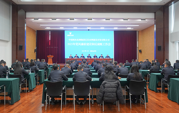 1月21日,中國南水北調集團江漢水網建設開發有限公司召開2025年黨風廉政建設和反腐敗工作會議。黨委書記、董事長于濤出席會議并講話,黨委副書記賈志營主持會議,黨委委員、紀委書記王志文作工作報告。