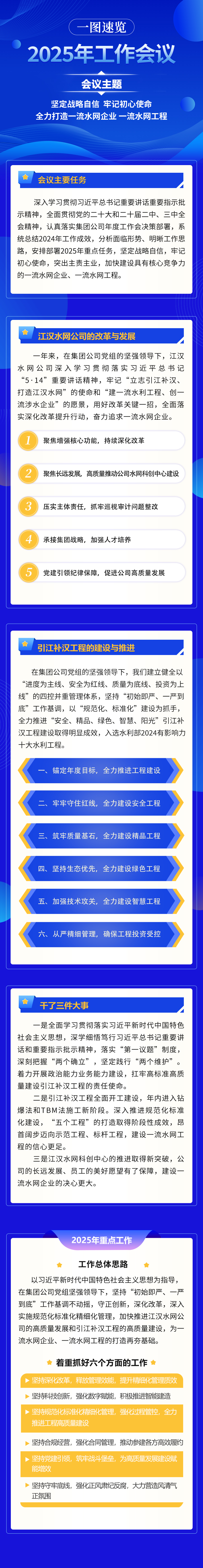 1月21日,中國南水北調集團江漢水網建設開發有限公司召開2025年工作會議。集團黨組副書記、總經理孫志禹出席會議并講話。