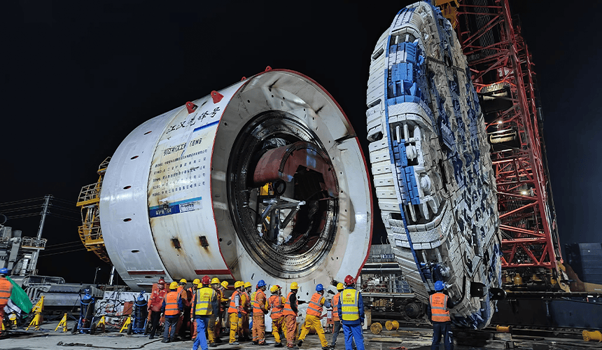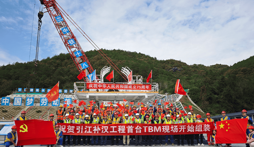 南水北調中線引江補漢工程:第三臺硬巖掘進機即將完成組裝。