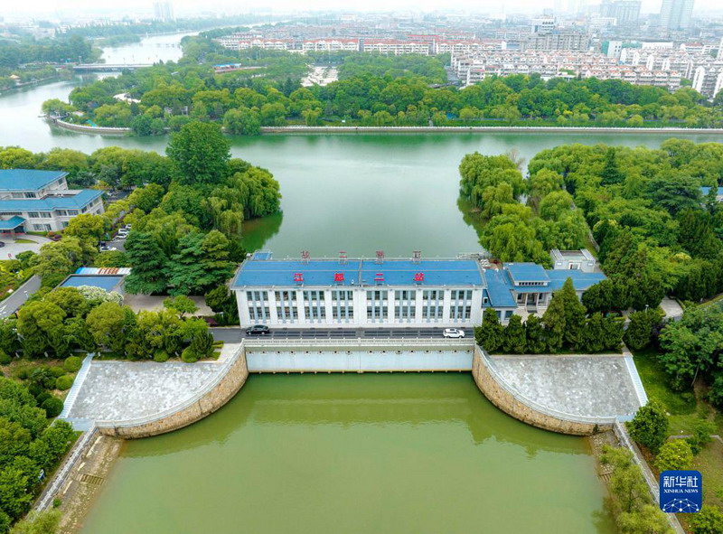 這是6月1日拍攝的位于江蘇省揚州市江都區(qū)的南水北調(diào)東線源頭江都水利樞紐(無人機照片)。