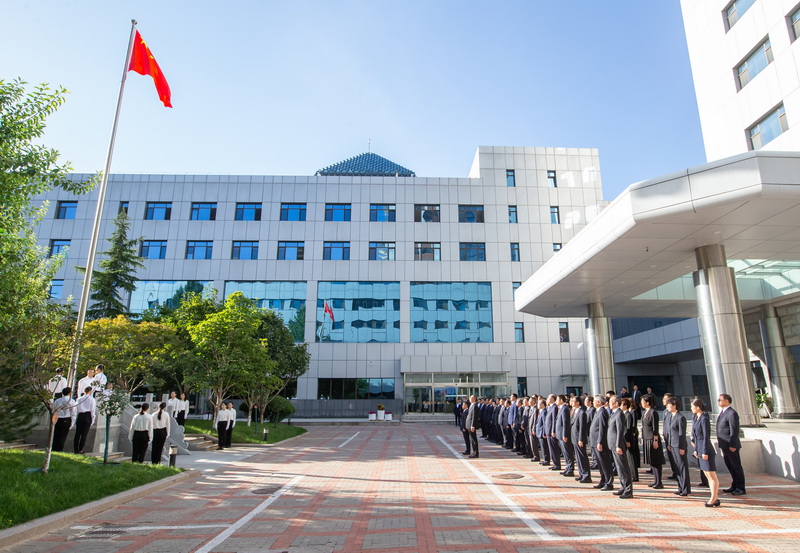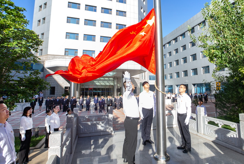 儀式開始后,23名部機關先進典型代表組成的升護旗方隊精神抖擻、步伐鏗鏘,護衛國旗走向升旗臺。伴隨雄壯的《義勇軍進行曲》,鮮艷的五星紅旗冉冉升起,在場全體干部職工整齊列隊、肅立致敬、齊唱國歌,向國旗行注目禮。