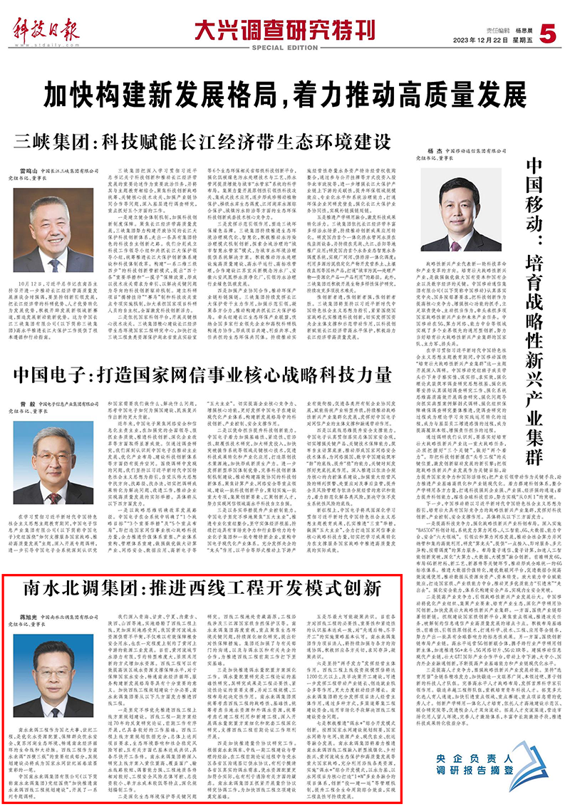 編者按:12月22日,《科技日報》大興調查研究特刊發表中國南水北調集團黨組書記、董事長蔣旭光署名文章,本篇全文轉發,敬請關注!