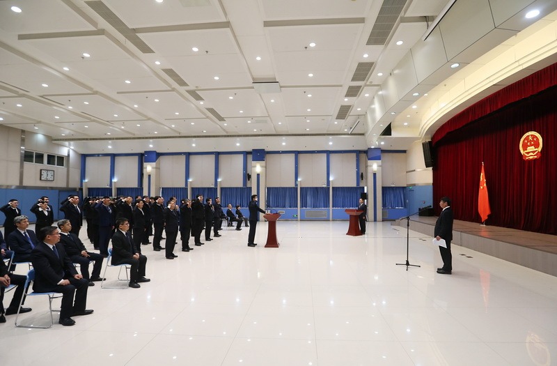 本站訊 根據《中華人民共和國憲法》和《國務院及其各部門任命的國家工作人員憲法宣誓組織辦法》規定,1月26日,水利部舉行機關新任職公務員憲法宣誓儀式,組織新任命的31名機關司處級公務員進行憲法宣誓。水利部黨組書記、部長李國英監誓。部領導王新哲、王道席、劉偉平、朱程清、陳敏出席宣誓儀式。