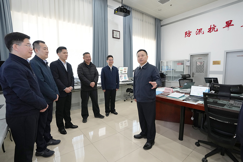 李國英在機關(guān)中控室檢查值班值守工作并看望慰問值班人員