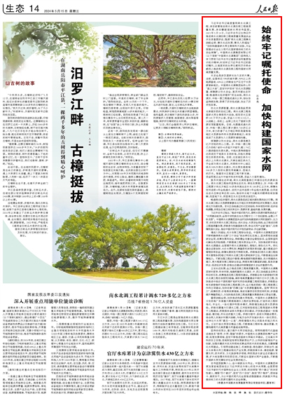 始終牢記囑托使命 加快構建國家水網