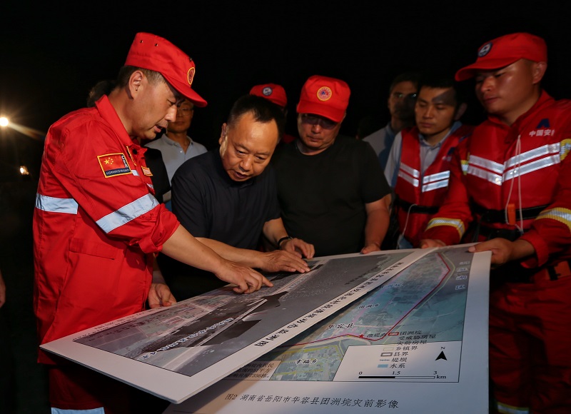 6日晚,李國英現(xiàn)場勘察團(tuán)洲垸堤防決口情況,詳細(xì)了解人員轉(zhuǎn)移、垸區(qū)水情、封堵準(zhǔn)備等情況,與地方和有關(guān)部門負(fù)責(zé)同志、技術(shù)專家、搶險(xiǎn)人員會(huì)商研究堤防決口封堵方案。7日上午,李國英來到與團(tuán)洲垸緊臨的錢糧湖南垸、新生垸,先后勘察錢團(tuán)間堤、悅來河、新生間堤、藕池河以及部分安全區(qū)圍堤情況,與有關(guān)各方對(duì)堤防防守方案進(jìn)行深入研究。