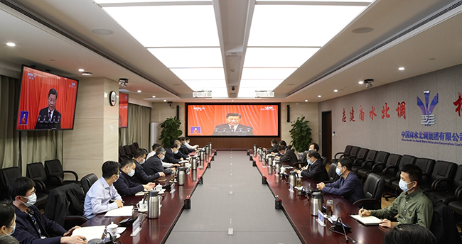 廣大黨員干部職工表示,新時代十年偉大成就的取得,根本在于習(xí)近平總書記領(lǐng)航掌舵,根本在于習(xí)近平新時代中國特色社會主義思想科學(xué)指引。中國共產(chǎn)黨用偉大奮斗創(chuàng)造了百年偉業(yè),也一定能用新的偉大奮斗創(chuàng)造新的偉業(yè)。南水北調(diào)集團(tuán)全體黨員干部職工將深入學(xué)習(xí)宣傳貫徹黨的二十大精神,迅速把思想和行動統(tǒng)一到黨的二十大精神上來,全面貫徹習(xí)近平新時代中國特色社會主義思想,深刻領(lǐng)悟“兩個確立”的決定性意義,增強(qiáng)“四個意識”、堅(jiān)定“四個自信”、做到“兩個維護(hù)”,牢牢把握大會主題,深刻領(lǐng)會報(bào)告提出的一系列新論斷、新思想、新戰(zhàn)略、新要求,緊密結(jié)合南水北調(diào)工作實(shí)際抓好貫徹落實(shí)。要把學(xué)習(xí)貫徹黨的二十大精神,與學(xué)習(xí)貫徹習(xí)近平總書記關(guān)于南水北調(diào)的一系列重要講話指示批示緊密結(jié)合起來,心懷“國之大者”,牢記“三個事關(guān)”,守好“四條生命線”,堅(jiān)定“志建南水北調(diào)、構(gòu)筑國家水網(wǎng)”的信心決心,聚焦集團(tuán)“五個三”總體發(fā)展思路,深入實(shí)施“通脈、聯(lián)網(wǎng)、強(qiáng)鏈”發(fā)展戰(zhàn)略,以更加飽滿的精神、更加昂揚(yáng)的斗志、更加扎實(shí)的作風(fēng),全面推進(jìn)南水北調(diào)后續(xù)工程高質(zhì)量發(fā)展,加快構(gòu)建國家水網(wǎng)主骨架和大動脈,錨定目標(biāo)、團(tuán)結(jié)奮斗、踔厲奮發(fā)、篤行不怠,切實(shí)把學(xué)習(xí)宣傳貫徹黨的二十大精神轉(zhuǎn)化為推動南水北調(diào)和國家水網(wǎng)高質(zhì)量發(fā)展的生動實(shí)踐,為全面建設(shè)社會主義現(xiàn)代化國家、以中國式現(xiàn)代化全面推進(jìn)中華民族偉大復(fù)興作出新的更大貢獻(xiàn)。