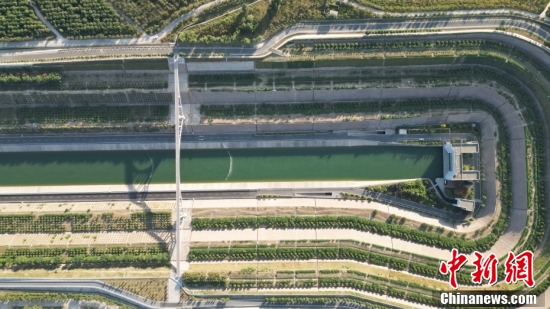 南水北調中線總干渠與黃河十字相交。 (中新社記者 李超慶 攝)