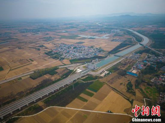 圖為一渠“南水”沿蜿蜒的總干渠北流進入沙河渡槽。 ( 闞力 攝)