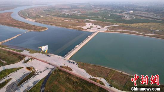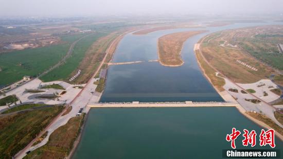 滹沱河是石家莊的“母親河”,自2017年開始,利用過滹沱河退水閘向滹沱河進行生態補水,生態補水后滹沱河河道沿岸地下水位明顯回升,地下水資源得到有效補充。同時,“南水”的到來讓滹沱河恢復了生機,水清岸綠的美景吸引了不少市民前來游玩。圖為航拍位于石家莊的南水北調滹沱河倒虹吸工程。(無人機照片)